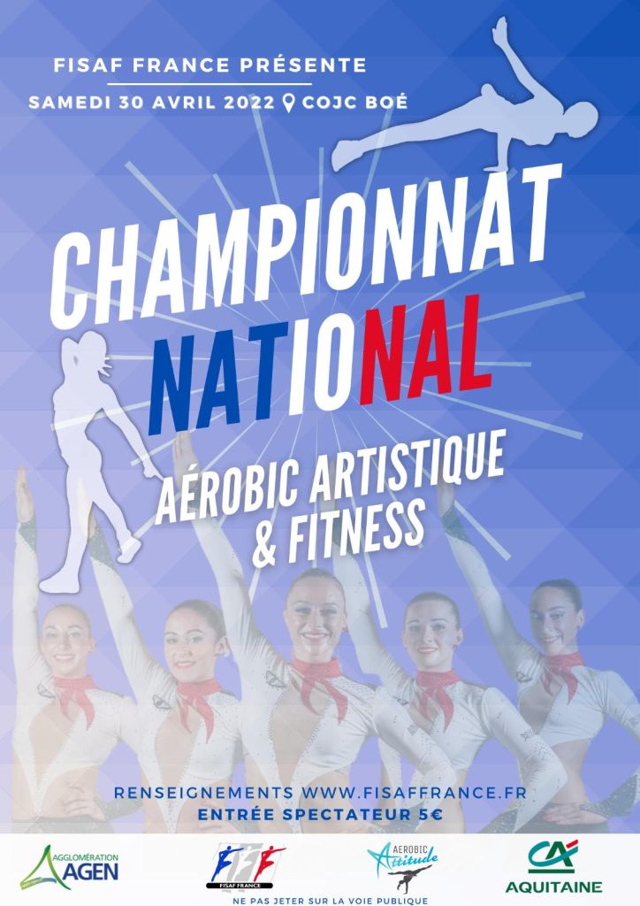 Nos clubs français auront l’occasion de se retrouver pour concourir dans le Championnat national qui se déroulera au COJC d’Agen-Boé le samedi 30 avril prochain dés 9h. Le Sport Aerobic et le Fitness seront représentés dans la majorité des catégories. C’est le club Aerobic Attitude d’Agen qui est l’organisateur de cette édition 2022.